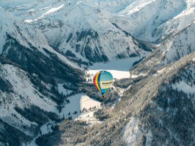 Hoch hinaus geht es in den Tiroler Bergen natürlich allerorts. Aber einen ganz speziellen Blick auf die Gipfel ermöglicht eine Ballonfahrt über den winterlichen Kaiserwinkl oder das Tannheimer Tal. Im Winter bieten die Fahrten eine tolle Sicht auf die Tiroler Täler, sogar bis zur Zugspitze und nach Südtirol und die Schweiz. Auch Alpenüberquerungen werden angeboten.