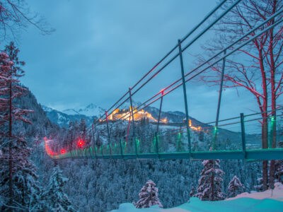 Magische Winterwanderungen zu Burgen, Wildgehegen und über eine der längsten Hängebrücken der Welt