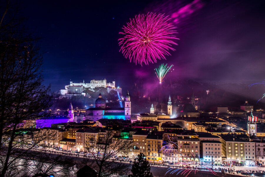 Nach Weihnachten ist noch nicht Schluss mit den Feierlichkeiten. Zum Jahreswechsel locken hochkarätige Neujahrskonzerte in Salzburgs Konzertsäle, der Christkindlmarkt rund um den Salzburger Dom und das traditionelle Neujahrsschießen lassen das alte Jahr ausklingen und stimmen auf 2026 ein. Pünktlich zu Mitternacht läuten die Glocken des Salzburger Doms und ein farbenprächtiges Silvesterfeuerwerk erleuchtet den nächtlichen Himmel.