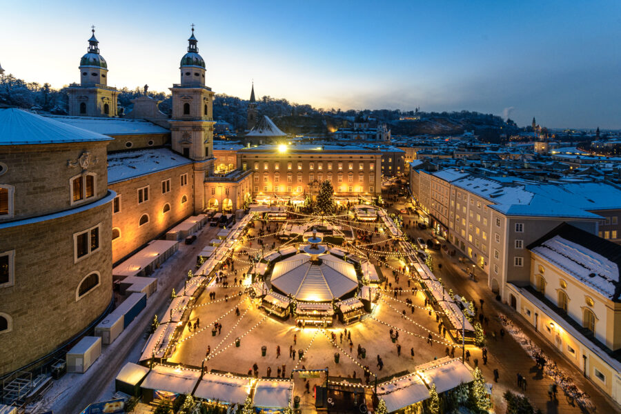 Die Adventsstimmung in der Salzburger Altstadt ist etwas ganz Besonderes: Der berühmte Salzburger Christkindlmarkt am Dom- und Residenzplatz (vom 20. November 2025 bis zum 1. Januar 2026) steht für echte Weihnachtsstimmung. Auf die Besucher wartet ein buntes Programm mit vielen Höhepunkten: Neben dem traditionsreichen Turmblasen gibt es tägliche Chorkonzerte, Krampus- und Perchtenläufe, weihnachtliche Lesungen sowie Auftritte des Salzburger Christkindes mit seinen Engeln. Daneben werden auch regionales Kunsthandwerk und köstliche Spezialitäten angeboten. Einige Ausstellerfamilien sind seit mehr als 50 Jahren dabei, auch schon am früheren Standort am Mirabellplatz. Der Christkindlmarkt wird seit 2021 bis Neujahr verlängert und bietet Besuchern damit die Chance, während der Weihnachtsferien entspannt über den Markt zu bummeln.