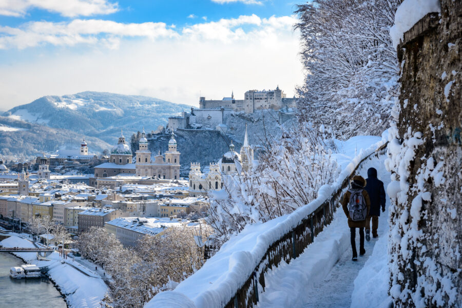 In Salzburg wird einem auch in der kalten Jahreszeit warm ums Herz. Dieses wohlige Gefühl beginnt mit der stimmungsvollen Vorweihnachtszeit, wenn der Christkindlmarkt am Dom- und Residenzplatz die Altstadt verzaubert. Und wenn das alte Jahr mit Feuerwerk und Spektakel verabschiedet wurde, erklingt bald wunderbare Musik in der Stadt: Die Mozartwoche feiert 2026 sowohl ihr 70-jähriges Bestehen als auch den 270. Geburtstag des weltbekannten Komponisten. In diesem Rahmen kommt es unter anderem zu einer Neuinszenierung von Rolando Villazón der Zauberflöte.