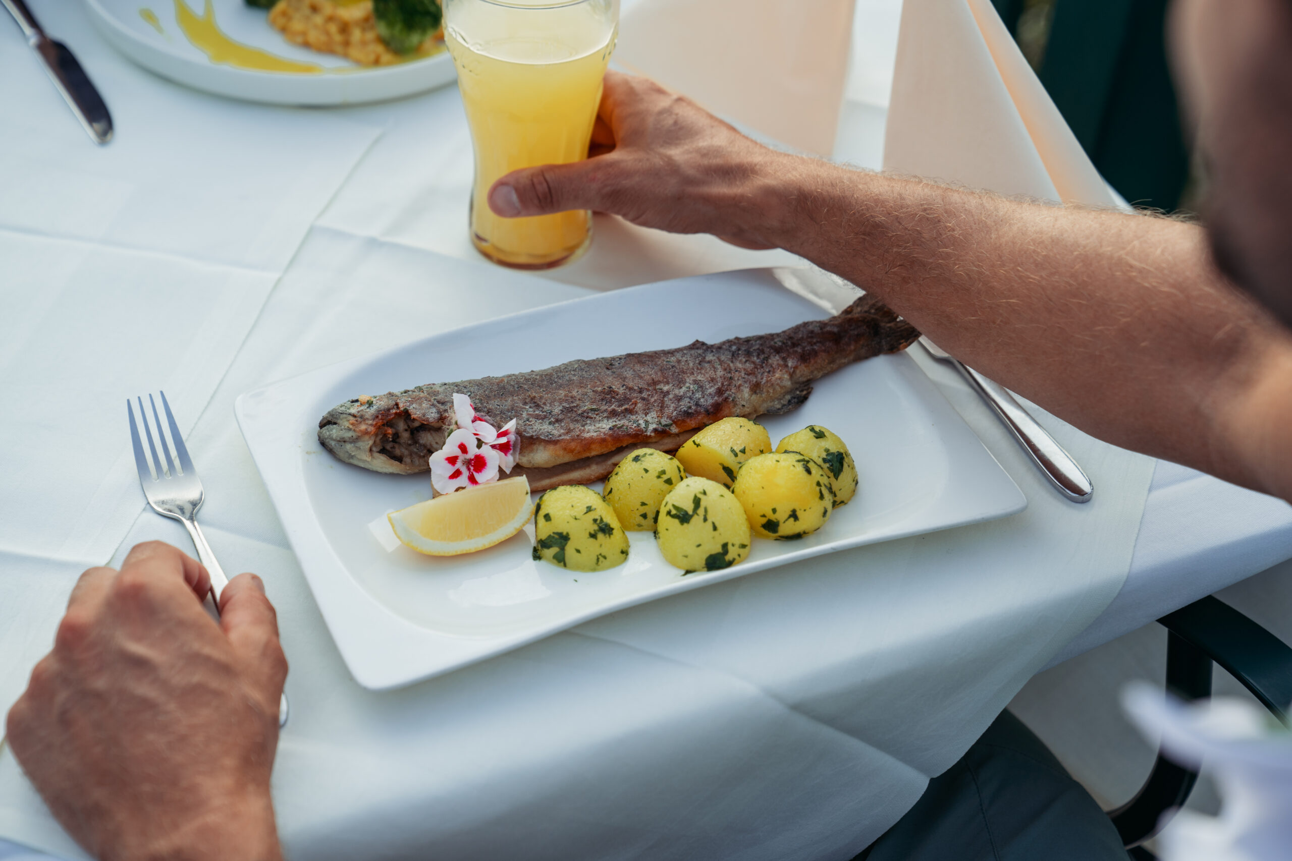 Was man entlang der blauen Donau auf jeden Fall nicht versäumen sollte, ist der Genuss von fangfrischem Fisch. In der Donauregion Oberösterreich tischen zahlreiche Restaurants und Gasthöfe Weißfische wie Aitel, Barbe und Brachse oder Edelfische wie Forelle, Saibling, Zander und Karpfen auf. Oft auf schönen Terrassen direkt am Wasser. Ein besonderer Tipp ist das Restaurant Luger in Neustift im Mühlkreis. Markus Luger, dessen Urgroßvater einst mit einem kleinen Wirtshaus begann, serviert frischen, vor der Haustür selbst gefangenen Fisch. Weitere Empfehlungen sind der Fischgasthof Aumüller in Obermühl, das DonAu Stand’l beim Camping Au und das Riverresort Donauschlinge, das direkt an der Schlögener Schlinge liegt.