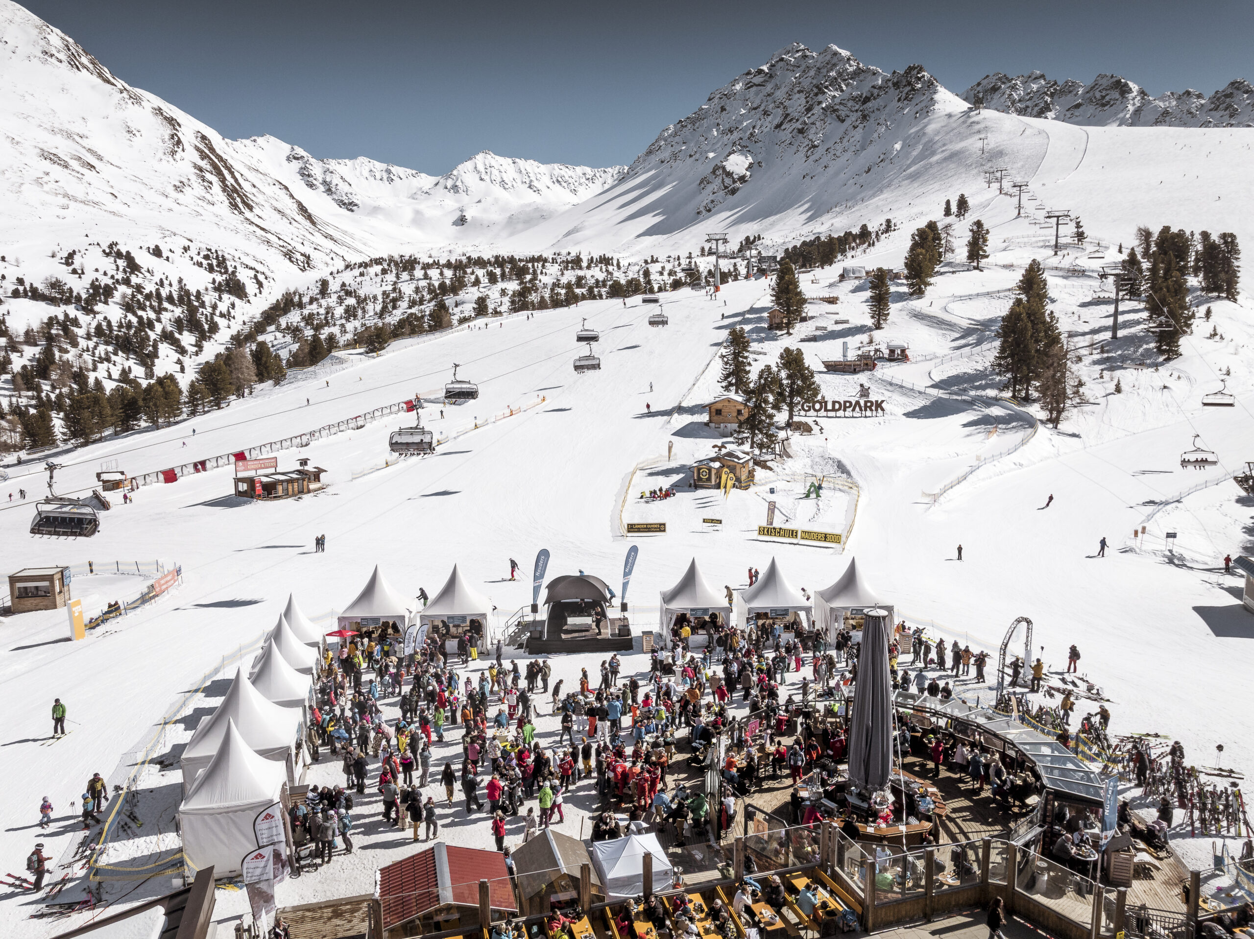 Zu einem schönen Winterurlaub gehört selbstverständlich auch Genuss – musikalisch und kulinarisch. Dafür sollte man sich vor allem zwei Termine merken: Vom 23. bis 29. März 2026 finden im Skigebiet sowie im gesamten Ort Nauders die Golden Mountain Beats statt. Bekannte DJs sorgen an diesen Tagen für coolen Sound entlang der Pisten. Das Highlight: Als einer der Headliner tritt der österreichische Singer-Songwriter Lemo im Rahmen eines Ö3-Konzerts auf. Lemo wird seine größten Hits wie „Vielleicht der Sommer“, „Himmel über Wien“ und „Tu es“ singen.