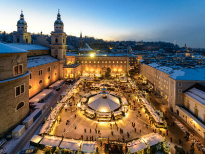 Die Adventsstimmung in der Salzburger Altstadt ist etwas ganz Besonderes: Der berühmte Salzburger Christkindlmarkt am Dom- und Residenzplatz (vom 20. November 2025 bis zum 1. Januar 2026) steht für echte Weihnachtsstimmung. Auf die Besucher wartet ein buntes Programm mit vielen Höhepunkten: Neben dem traditionsreichen Turmblasen gibt es tägliche Chorkonzerte, Krampus- und Perchtenläufe, weihnachtliche Lesungen sowie Auftritte des Salzburger Christkindes mit seinen Engeln. Daneben werden auch regionales Kunsthandwerk und köstliche Spezialitäten angeboten. Einige Ausstellerfamilien sind seit mehr als 50 Jahren dabei, auch schon am früheren Standort am Mirabellplatz. Der Christkindlmarkt wird seit 2021 bis Neujahr verlängert und bietet Besuchern damit die Chance, während der Weihnachtsferien entspannt über den Markt zu bummeln.